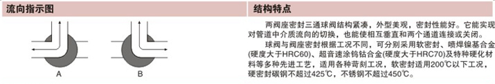 三通球閥是一(yī)種比較新型的球閥(fá)類別,它有著自身結構所的(de)一(yī)些優越性,如開(kāi)關無摩擦,密封不易磨(mó)損,啟閉力矩小。這(zhè)樣可減小所配(pèi)執行器的規格。L三通球閥型隻能連(lián)接相互正交的(de)兩條管道,不能同時保持第三條管道的相互連通,隻起分(fèn)配作用。